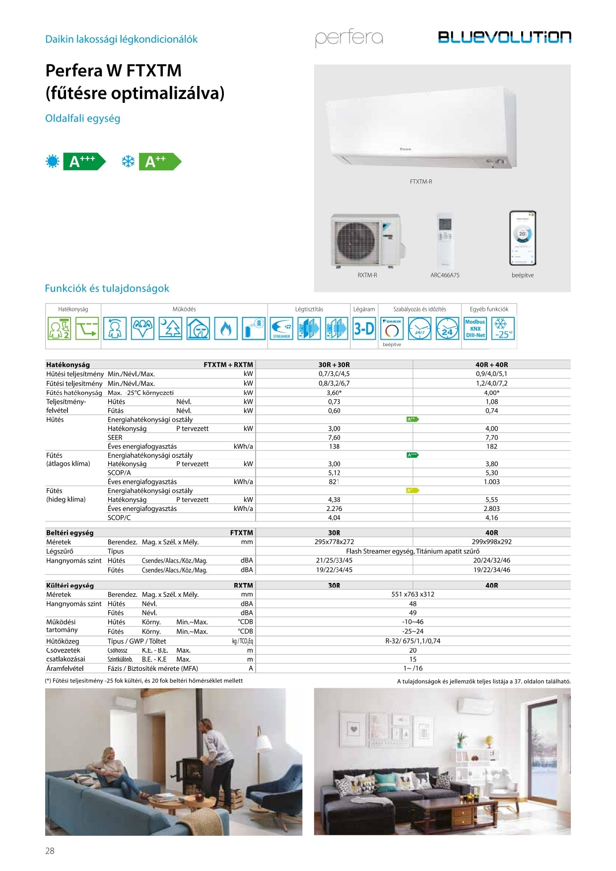 A Daikin FTXTM30R / RXTM30R FŰTÉSRE OPTIMALIZÁLT Perfera Inverteres Split klíma fontos tulajdonságai: