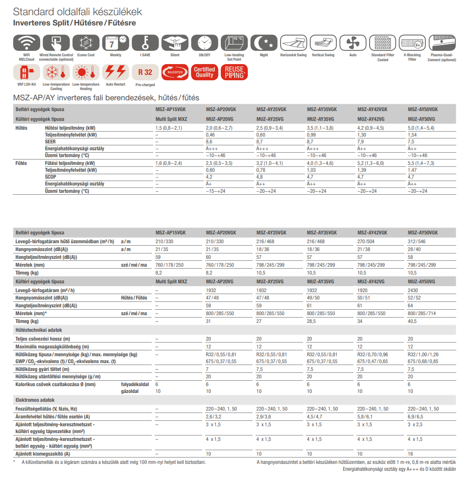 A Mitsubishi MSZ-AY42VGKP / MUZ-AY42VG Inverteres Split Klíma Plasma Quad szűrővel fontos tulajdonságai: