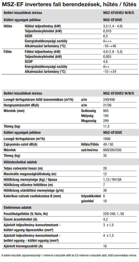 • Hűtő teljesítmény : 3,5 (1,4-4,0) kW