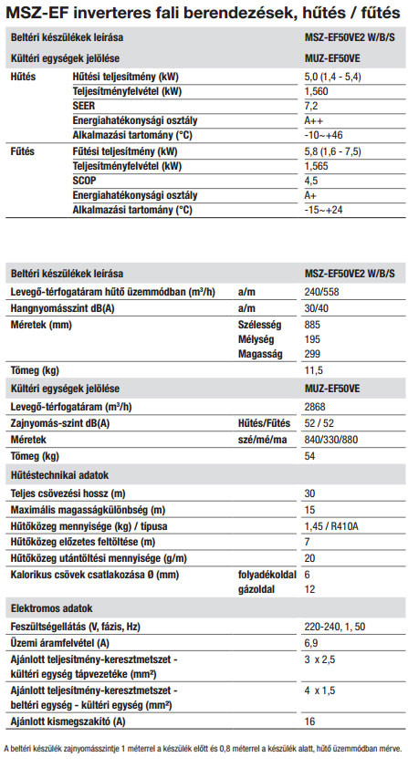 • Hűtő teljesítmény : 5,0 (1,4-5,4) kW