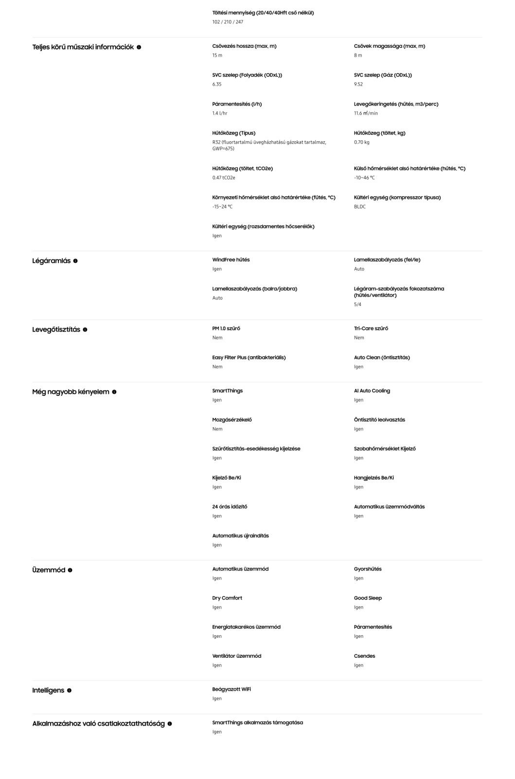 A Samsung AR60F12C1AWN/EU + AR60F12C1AWX/EU WindFree™ Comfort S2 Inverteres Split klíma fontos tulajdonságai: